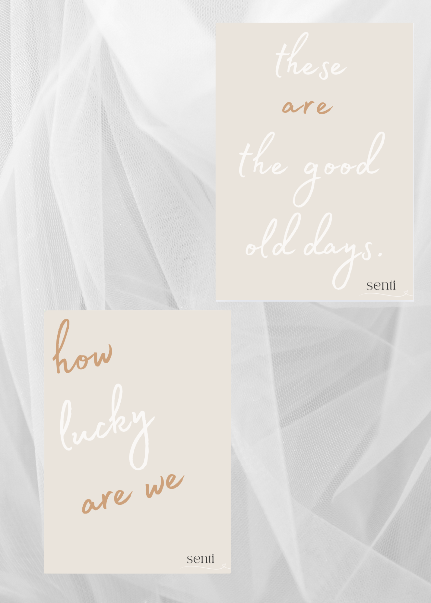 "How Lucky Are We" & "These Are The Good Old Days" Mini Print + stand - a meaningful keepsake they can display long after the moment has passed